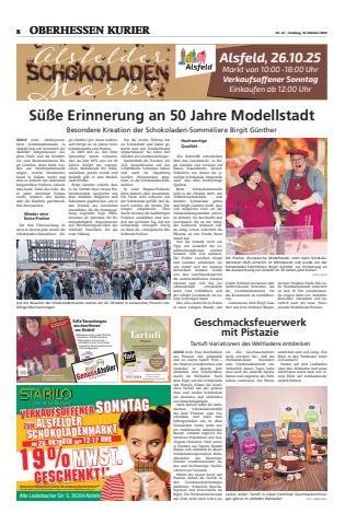 8 OBERHESSEN KURIER Nr. 42|Samstag, 18. Oktober 2025Geschmacksfeuerwerkmit PistazieTartufi-Variationen des Weltladens entdeckenAlsfeld (red). Eine K%u00f6stlichkeitaus Pistazie, fair gehandeltund zu einem fairen Preis %u2013das finden Genie%u00dferinnen undGenie%u00dfer in diesem Jahrp%u00fcnktlich zum Schokoladenmarkt im Weltladen. Nachdem Hype um die Schokolademit Pistazie bilden die k%u00f6stlichen Tartufi mit der gr%u00fcnenNuss und wei%u00dfer Schokoladeein absolutes und wirklichesGeschmackshighlight.Auch optisch laden die italienischen Schokoladentr%u00fcffelaus dem Piemont zum Verschenken und auch zumSelbstgenie%u00dfen ein. In allenVariationen steckt nicht nurein traditionelles italienischesRezept, sondern zugleich Piemonteser Haseln%u00fcsse mit knackigem Charakter. Viele weitere Zutaten aus Fairem Handelfinden sich ebenfalls in dieserSchokoladen-Spezialit%u00e4t: Rohrohrzucker aus Mauritius,feinster ecuadorianischer Kakao und hochwertige Vanilleschoten aus Tansania.Neben der neuen Sorte mitPistazie stehen die Tartufi inden GeschmacksrichtungenEdelbitter, Vollmilch, Kirsche,Espresso und Stracciatella imRegal. Die Weihnachtsvariantemit Zimt steht auch schon parat. %u00bbEin Geschmacksfeuerwerk erwartet Sie%u00ab, l%u00e4dt dasWeltladen-Team besonderszum Schokoladenmarkt ein.Anl%u00e4sslich dieses Tages kannman auch die anderen Spezialit%u00e4ten und Angebote des Weltladens entdecken. Die Ehrenamtlichen sind sich einig: %u00bbEinBlick in den Weltladen lohntsich immer!%u00abImmer auf dem Laufenden%u00fcber den Weltladen und seineAktivit%u00e4ten kann man mit einem Blick auf weltlaeden.de/alsfeld bleiben.Lecker, lecker: Tartufi in vielen k%u00f6stlichen Geschmacksrichtungen gibt es im Alsfelder Weltladen. Foto: WeltpartnerS%u00fc%u00dfe Erinnerung an 50 Jahre ModellstadtBesondere Kreation der Schokoladen-Somm%u00e8liere Birgit G%u00fcntherAlsfeld (eck). %u00bbAktivposten%u00abbeim Schokoladenmarkt inAlsfeld sind mit Sicherheit derAlsfelder B%u00fcrgermeister Stephan Paule und die Konditorin- und B%u00e4ckermeisterin Birgit G%u00fcnther, denn beide werden am Schokoladenmarktzeigen, welche Handwerkskunst in S%u00fc%u00dfem steckt undman es deshalb mit industriellhergestellten Pralinen aufnehmen kann. Denn die Liebe, diein jeder einzelnen Pralinesteckt, k%u00f6nnen den K%u00e4uferoder die K%u00e4uferin geschmacklich %u00fcberraschen.Wieder eineExtra-PralineF%u00fcr eine %u00dcberraschung istauch in diesem Jahr wieder dieSchokoladen-Somm%u00e8liere Birgit G%u00fcnther gut, denn traditionell fertigt sie zu jedem Schokoladenmarkt eine Praline.In 2025 will sie, mit ihrerSpezialit%u00e4t daran erinnern,dass im Jahr 1975, also vor 50Jahren Alsfeld zur europ%u00e4ischen Modellstadt f%u00fcr Denkmalschutz gek%u00fcrt wurde unddeshalb gibt es eine Modellstadt-Praline.Birgit G%u00fcnther erz%u00e4hlt, dasses im Vorfeld ihrer neuen Pralinenkreation Gespr%u00e4che mitdem Alsfelder Magistrat undBekannten gegeben hat, um inden Zutaten das Geschehenabzubilden, die der Namensgebung zugrunde liegt. Pflaumenmus als Synonym f%u00fcr Bodenst%u00e4ndigkeit, abgeschmecktmit Zitronen-Ingwer-Lik%u00f6r derSchlitzer Destillerie f%u00fcr dieerste F%u00fcllung.F%u00fcr die zweite F%u00fcllung hatsie Schokolade und Sahne gekocht und mit Traubenbrandabgeschmeckt. Sie nutzt denAlkohol als Geschmackstr%u00e4ger.Symbolhaft die Trauben, diesich beispielsweise auf der2-DM-M%u00fcnze befunden habenund auch im Vogelsbergwerden Weintrauben angebaut, so die Schokoladen-Somm%u00e8liere.In einer Magnet-Pralinenform kommt alles zusammen.Die Form wird teilweise mitder Schokolade gef%u00fcllt und danach werden die beiden F%u00fcllungen eingebracht. %u00dcberNacht k%u00f6nnen die halbfertigenPralinen ausk%u00fchlen und werden am n%u00e4chsten Tag mit derSchokolade versiegelt. Fertigist dann die %u00ab%u00bbEurop%u00e4ische Modellstadt-Praline%u00ab.HochwertigeQualit%u00e4t%u00bbDie Rohstoffe entscheiden%u00fcber den Geschmack%u00ab, so Birgit G%u00fcnther und verweist aufKakao, Kakaobutter, Zucker,Vollmilch, aus denen die jeweilige Schokolade hergestelltwird. Also alles hochwertigeQualit%u00e4t.Beim Schokoladenmarktwird es die %u00bbPraline 2025%u00ab mitVollmilchschokolade unddunkler Schokolade gebenund Birgit G%u00fcnther hofft, dasssich m%u00f6glichst viele an derSchokoladenspezialit%u00e4t erfreuen k%u00f6nnen. Sie beschreibt denGeschmack, der an das Alsfelder Fachwerk erinnern soll,als erdig, woran sicherlich diePflaume als alte Frucht ihrenAnteil hat.Von ihr kommt noch einTipp, wie Genie%u00dfer die Geschmacksexplosion erlebenk%u00f6nnen. Sich Zeit nehmen.Die Praline zwischen Zungeund Gaumen schmelzen lassen, damit sich die Aromenentwickeln k%u00f6nnen. Damitvon den Geschmacksnervendie unterschiedlichen Zutatenerkannt und sich das Geschmacksbild entwickelnkann. Und schlie%u00dflich, sichder erlebte Geschmack im Gehirn verfestigen kann.Dies alles vielleicht zu Hausein einer ruhigen Stunde, miteinem Schluck trockenen oderhalbtrockenen Rotweins, umdie Geschmacksnerven f%u00fcrdas Kommende zu sensibilisieren.Gemeinsam wird Birgit G%u00fcnther mit dem Alsfelder B%u00fcrgermeister Stephan Paule ihre s%u00fc%u00dfe Handwerkskunst zwischen14 und 15 Uhr pr%u00e4sentieren.Sie zeigen dabei wie %u00bbAlsfelderK%u00fcsschen%u00ab entstehen und nat%u00fcrlich auch die neue %u00bbEurop%u00e4ische Modellstadt-Praline%u00ab.Die Praline %u00bbEurop%u00e4ische Modellstadt%u00ab steht beim Schokoladenmarkt 2025 sicherlich im Mittelpunkt und wurde von derSchokoladen-Somm%u00e8liere Birgit G%u00fcnther zur Erinnerung andie Auszeichnung von Alsfeld vor 50 Jahren jetzt kreiert.Foto:s StockAuf die Besucher des Schokoladenmarkts warten am 26. Oktober in kuliarischer Hinsicht vielf%u00e4ltige %u00dcberraschungen.Alsfeld, 26.10.25Markt von 10:00-18:00 UhrVerkaufsoffener SonntagEinkaufen ab 12:00 Uhr19%MwSzum Alsfelder Alsfelder%am 26. Oktober von 12-17St.UhrAlte Liederbacher Str. 5, 36304 Alsfeld...mehr als nur Baumarkt!AlsfelderVerkaufsoffener Verka